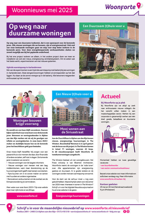 Woonforte post eens in de zoveel tijd een extra advertentie in het Alphens Nieuwsblad. Hiervoor maakt Buddi de ontwerpen.